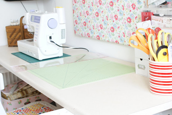 I've got a new desk by up-cycling the old kitchen counter-tops we ripped out downstairs. It's so sturdy, and a great neutral colour for the room. My old desk from IKEA bowed with the weight of my sewing machine so hoping this won't do the same?