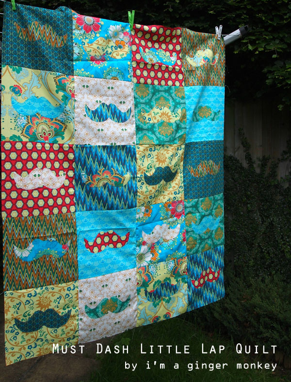 Hi, Katy Jones here from the I'm A Ginger Monkey blog. Today I am going to share with you my Must Dash Little Lap Quilt tutorial. This quilt has style and sophistication (hence the mustache appliques.. ha ha ha)