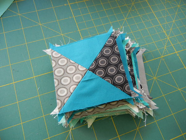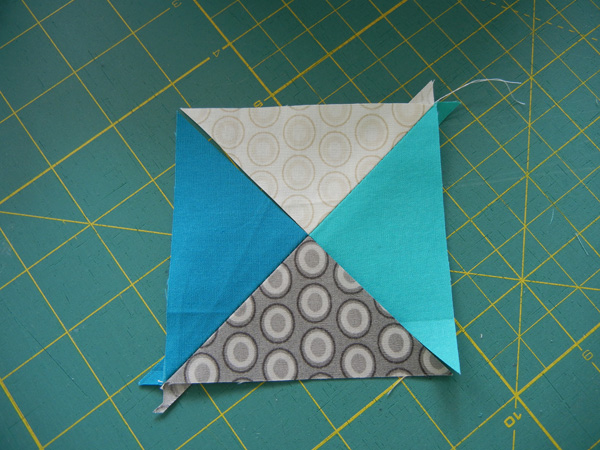 your rotary cutter – slice on the line your marked for corner to corner – press