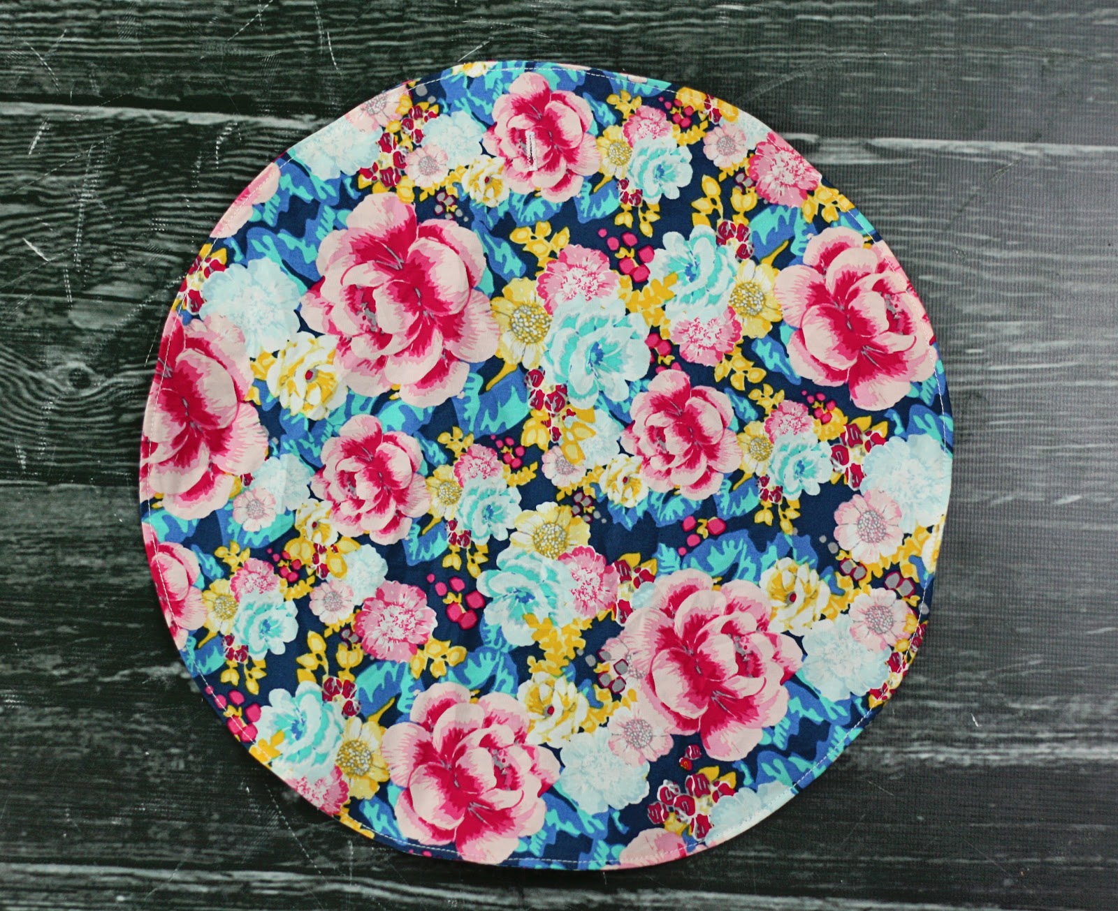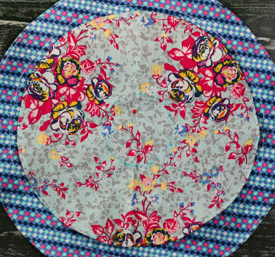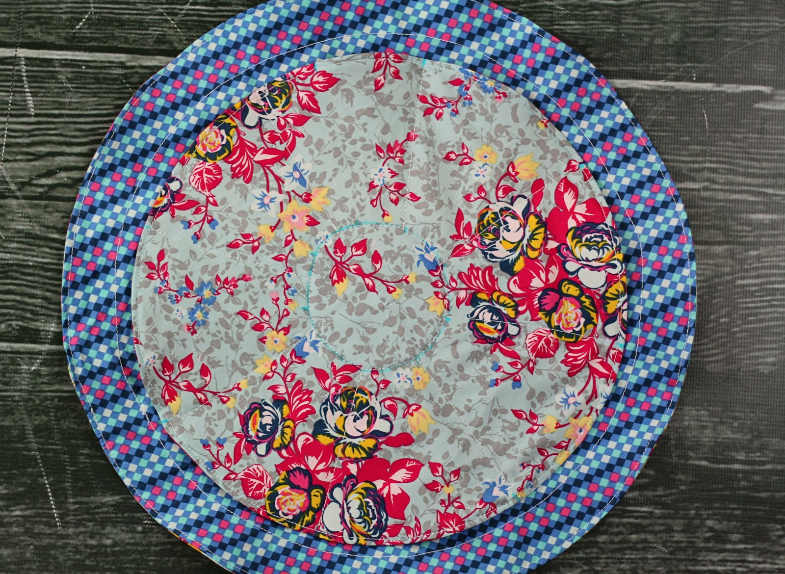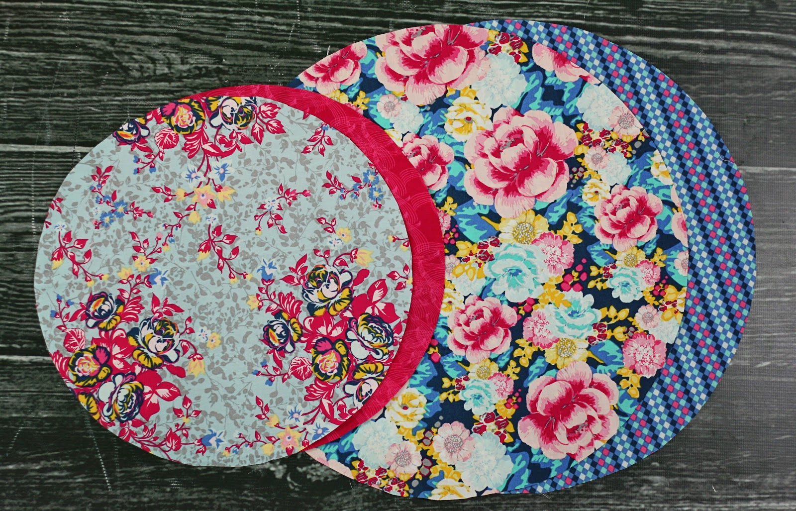 Step 4: Turn the large circle right side out. Topstitch 1/8" from the edge around the entire circle. This will close your opening, make it lay flat, and give it a professional look. Repeat with the smaller circle.