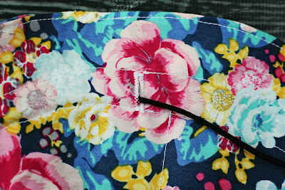 Step 7: Stitch everything together through all 4 layers following only the lines we've drawn. Don't forget to backstitch at the lines that are creating the pockets so that they are very secure.