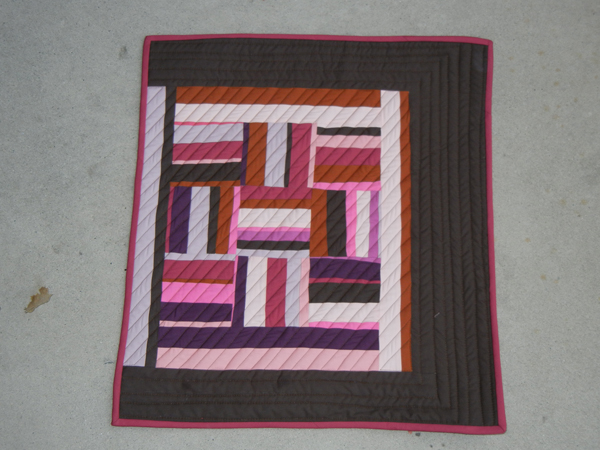 Step 8: Arrange your blocks in a rail fence order. Basically you’ll alternate the direction of the “rails” every other block with the rails in the vertical position. Sew the “rails” together and then sew the rows together.