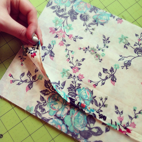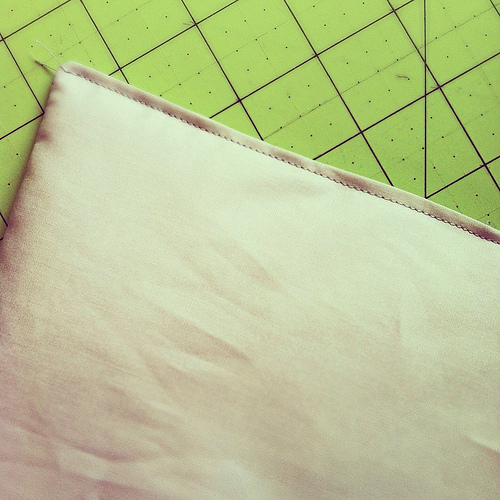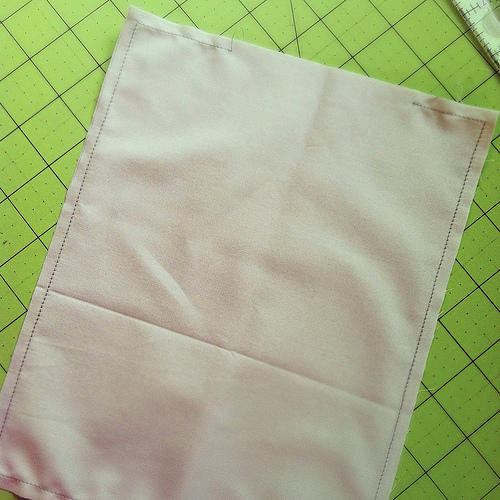 Note: The hems of the rectangles are supposed to overlap each other. Using a 1/4" seam allowance, stitch around all four sides of heating pad.