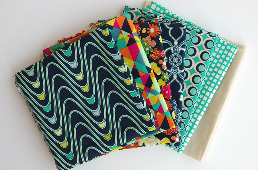 I decided to use Pat Bravo's Carnaby Stree to piece 3 traditional stitches: the cross stitch, straight stitch and zigzag. You might not automatically associate the design with stitching but that's ok because it has a cool graphic look to it at the same time. I used a big chunk of Ladylike Black Tea, my absolute favorite print in the line, for the rest of the exterior so that I would get to see it lots.