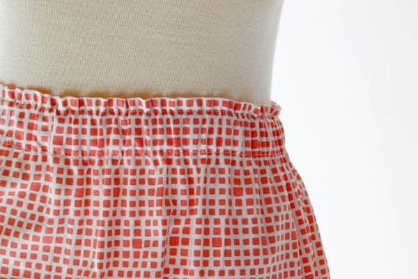 4. Next, use a safety pin to insert the waist elastic through the opening. When both ends meet, hand sew them together and close the opening with the same method.