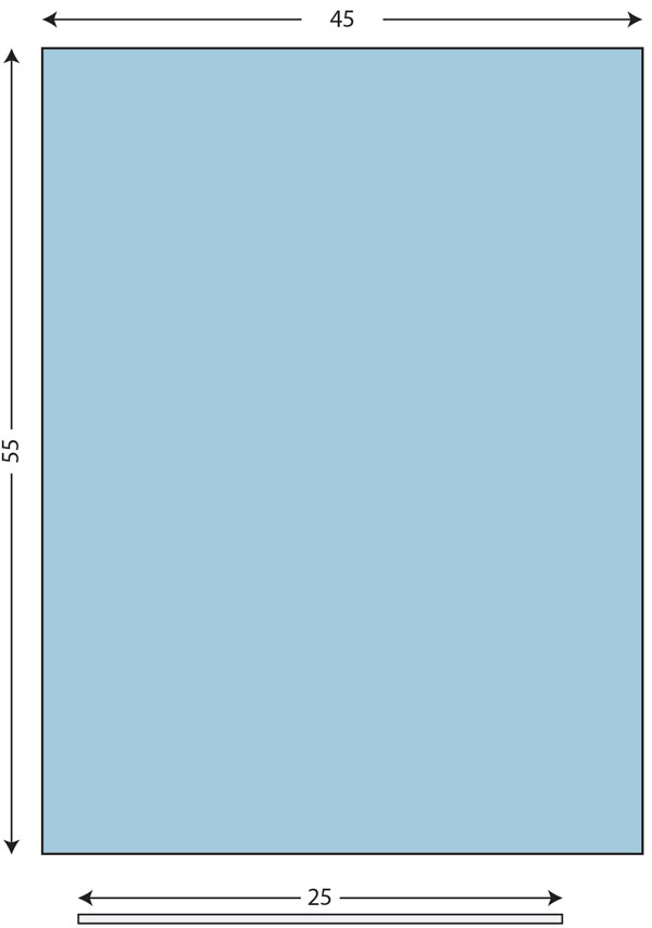 The measurements we're using are equivalent to a small size, which is Lorena's (our model) size. To get started, let’s cut a rectangle. To get the width, measure around the hip and add 3½” (we are using a 45” measurement for this skirt). For the length, measure from the waist to your desired length and add 4” (ours is 55”). Now measure your hip again and cut a strip of elastic that can stretch to that measurement plus a little bit more for extra comfort (we used a 25" strip).