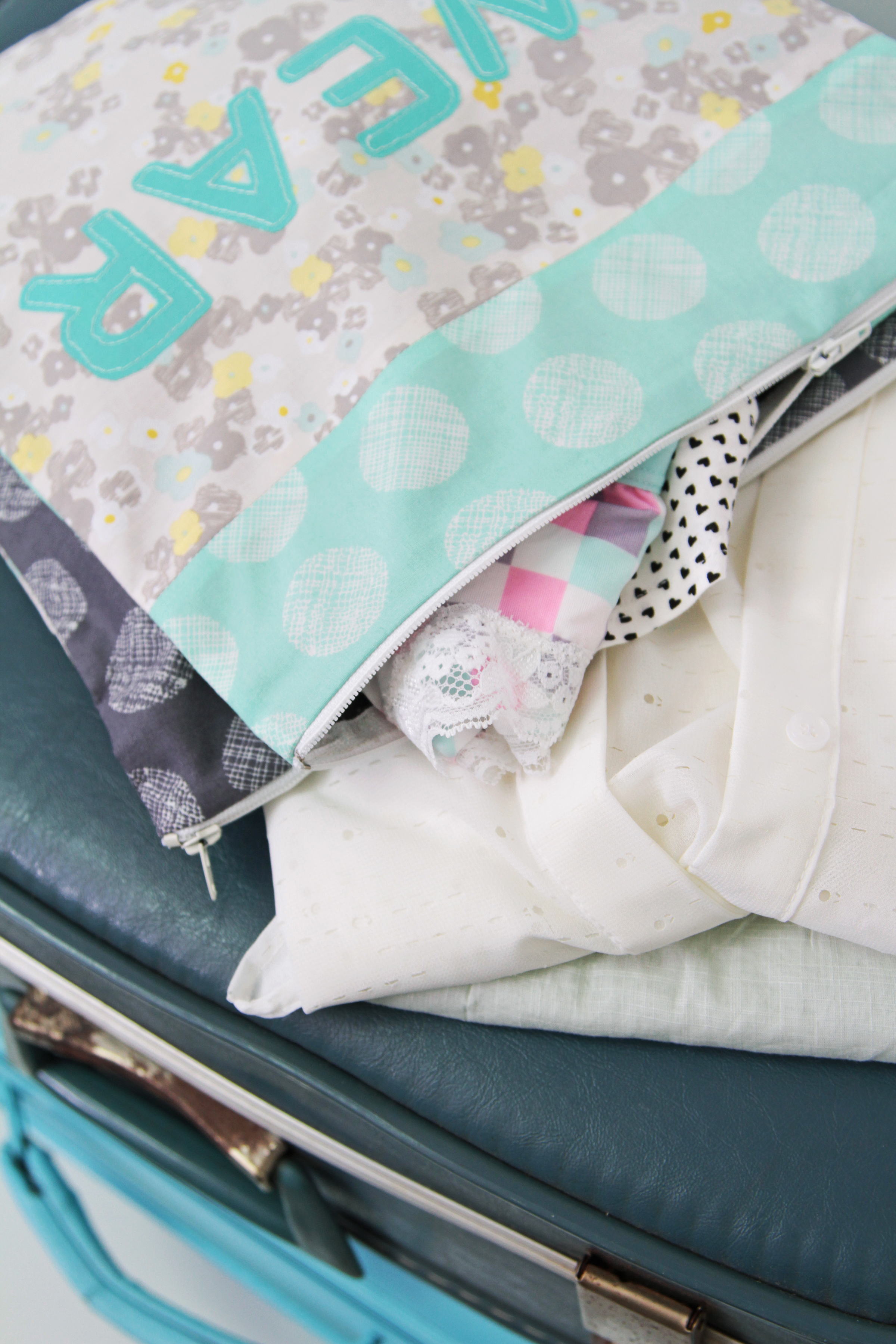 Hello! How is 2014 going so far? I always write about how time goes by rather quickly, but I mean, I feel like it was last week when I posted the Sprouts of Joy tutorial that had somewhat of a holiday theme, and now here I am with a travel-themed tutorial half-way (almost) through January. All of that said (phew!), I know that travelling is on top of the list for most of us, and even the messiest packers (rolls eyes and whistles) enjoy an organised suitcase. The purpose of this tutorial is to make the packing and unpacking experience easier on you (the traveller). This little Wash & Wear Travel Pouch, is big enough to store underwear, but I say, if you really love the idea of this for all of your garments, make a bigger one by just increasing the dimensions proportionally.