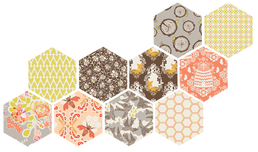We are coated in nature's sweet nectar today! By nectar we mean fabric, and by sweet we mean Sweet as Honey. This fabric collection (Bonnie Christine's second with AGF) is officially out in stores and ready to be warmly welcomed into your stash!