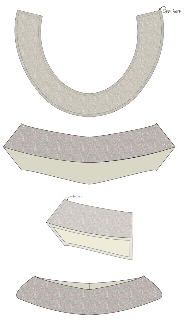Iron the heavy-weight fusible interfacing to the lining pieces (you should have three pieces left without interfacing) Repeat the first constructions step with the lining (and fused) pieces.