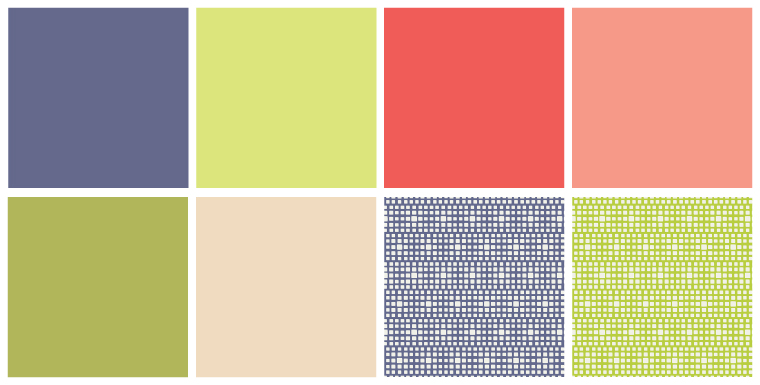 Chic Flora’s color palette consists of different shades of mineral blues, bright corals and tints of lime.