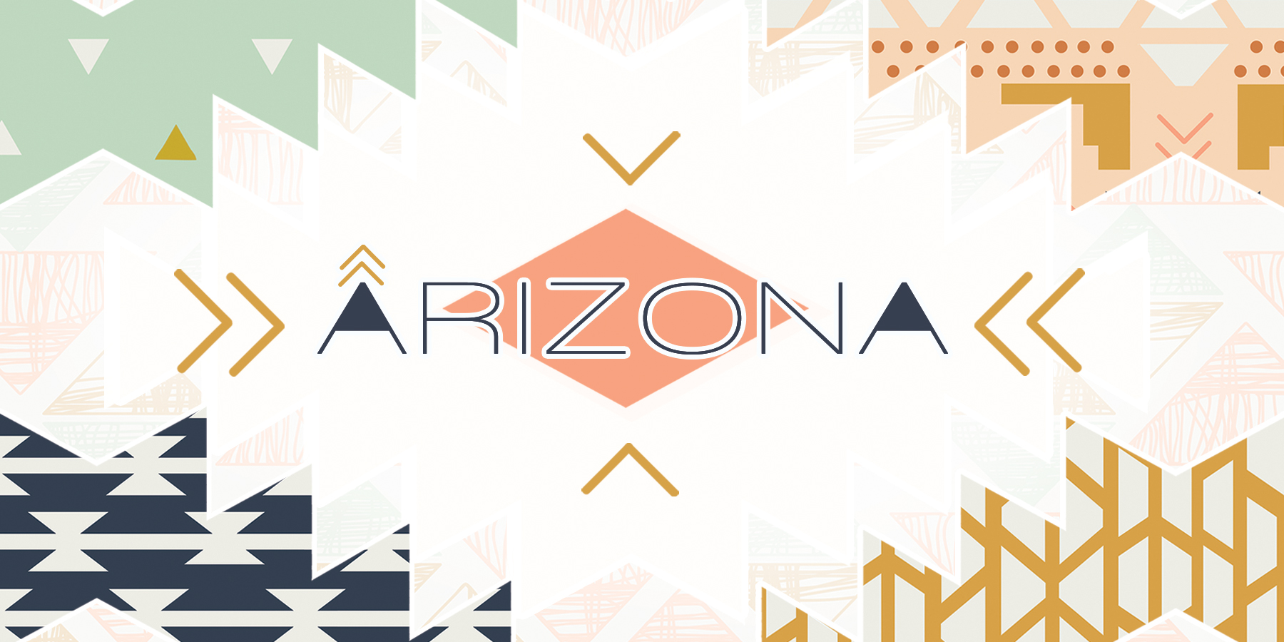 Arizona is inspired by the fantasy of a traveling desert nomad and is depicted through shades of gold and peach against a dusty sky. Motifs of arrowheads and bones evoke a graceful snapshot of the southwestern spirit with a twist of tribal influence.