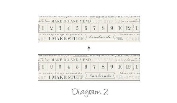 Iron a 3 1/2” x 10 1/2” piece of fusible to a 3 1/2” x 10 1/2” strip from Fabric A. Sew that piece to the other 3 1/2” x 10 1/2” strip from Fabric A following Diagram 2.
