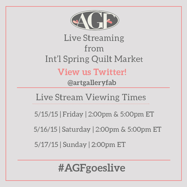 This live stream is going to let you interact with us and the designers in real time!!! Let us know what would you like to see from the show, questions for the designers or the AGF girls, tour of our booths, and more. Be sure to add the hash-tag #AGFGoesLive when sending your questions via Twitter or simply leave them in the comment section below.