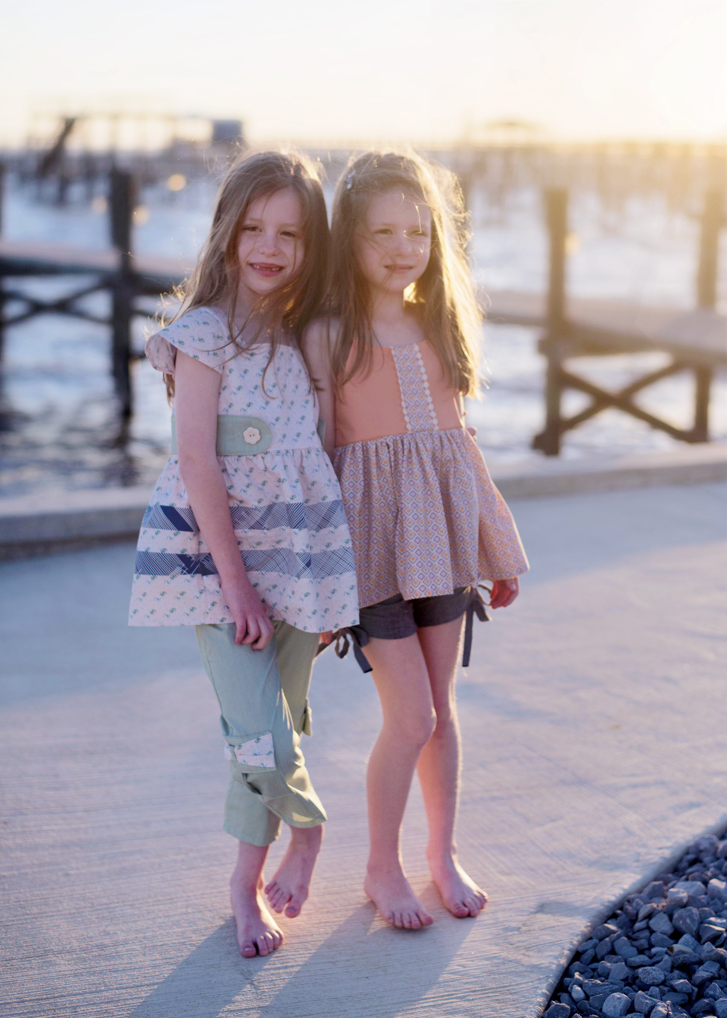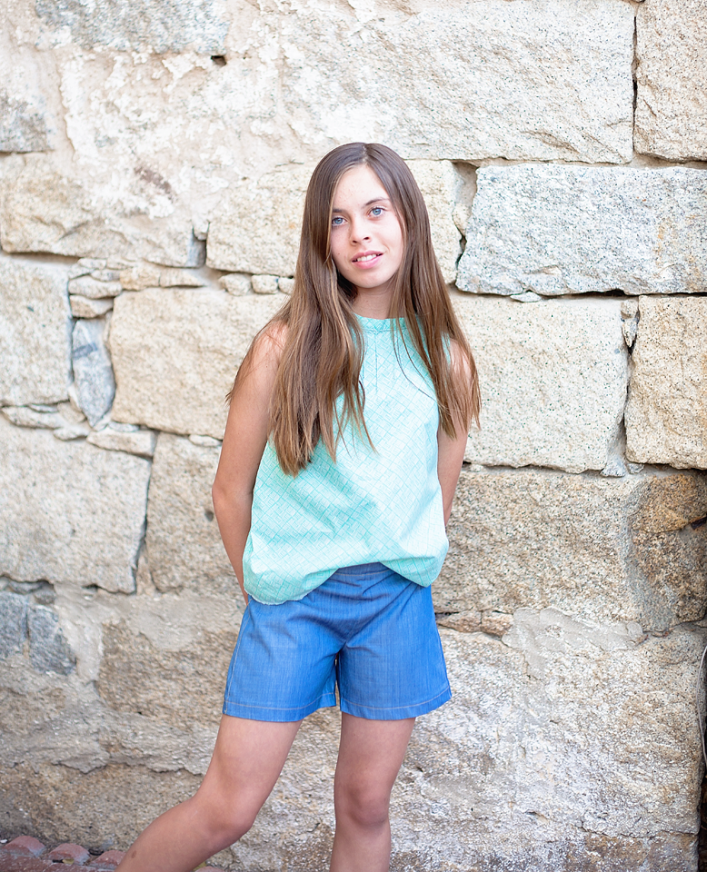 Katie worked with some of our Solid Smooth denims in the lighter colours (Frosted Sage & Infused Hydrangea), and made delicate garments that would also be comfortable for the girls- who by the way are awesome models.