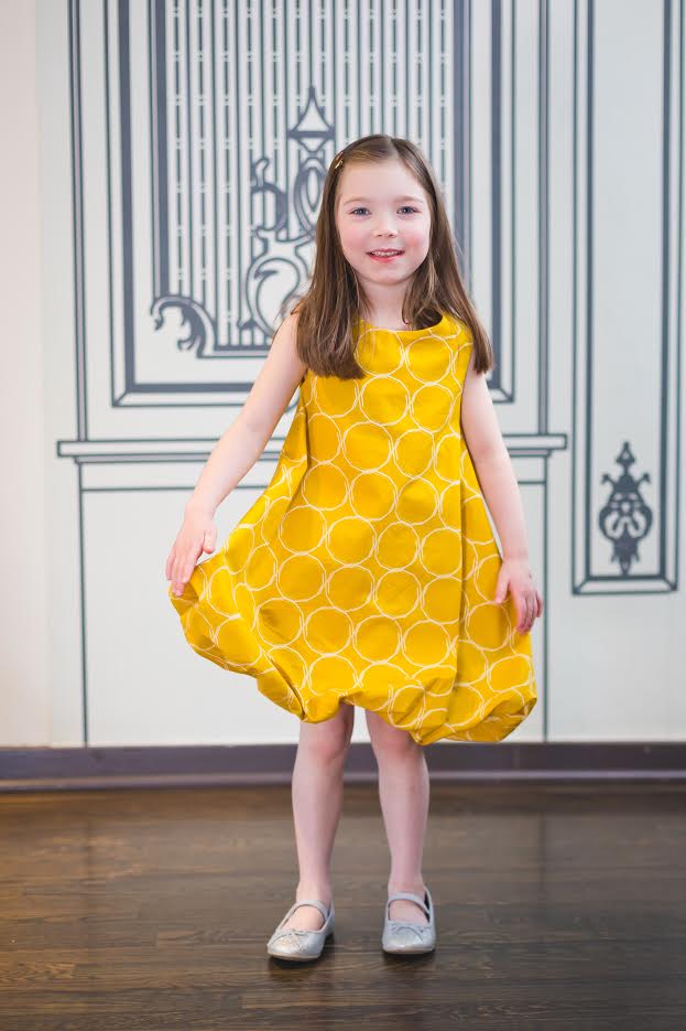 We just can’t get enough of this dress. It's so elegant and casual at the same time. The honey mustard fabric from Essentials II by Pat Bravo makes it such a cheerful creation! Your little girl can wear it with leggings for colder days! Thanks to Baby Hobbes Design for making this cutie!