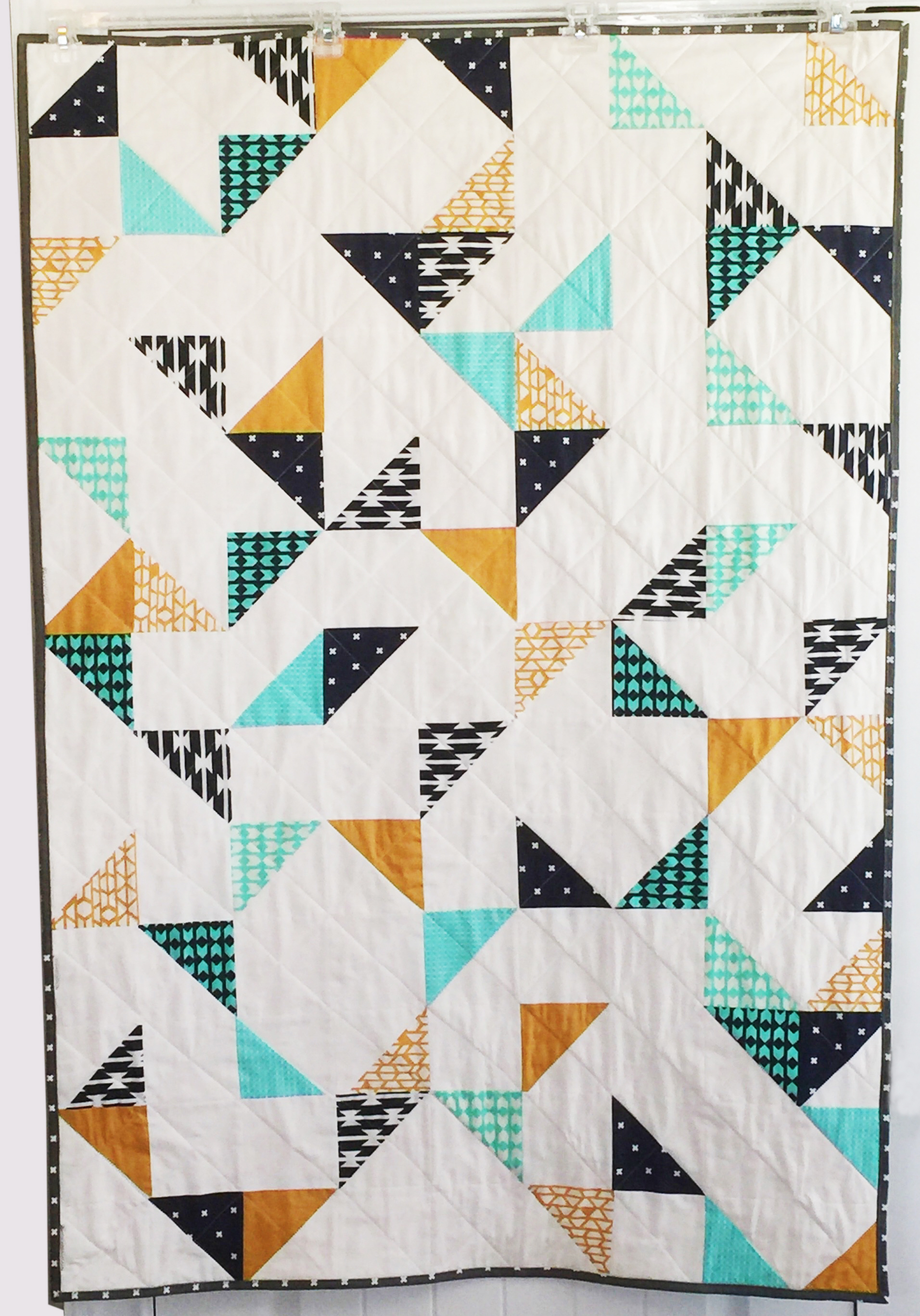I had to name the quilt after her creator! :) Meredith sent us a picture of this quilt and it was love at first sight. She did a random placement of half square triangles and white patchwork. Do you remember what's the most important factor to make something beautiful with mustard fabric? It’s to know how to color-coordinate it! Great job Meredith! The combination of mustard fabric (from Arizona collection by April Rhodes) with white and shades of blue looks simply stunning!