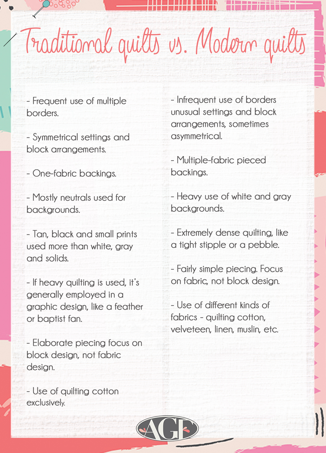 Tag, B. (n.d.). Tag Archives: Modern vs. traditional quilts. Retrieved September 19, 2016, from http://www.quiltersnewsletter.com/blogs/insideqn/tag/modern-vs-traditional-quilts/
