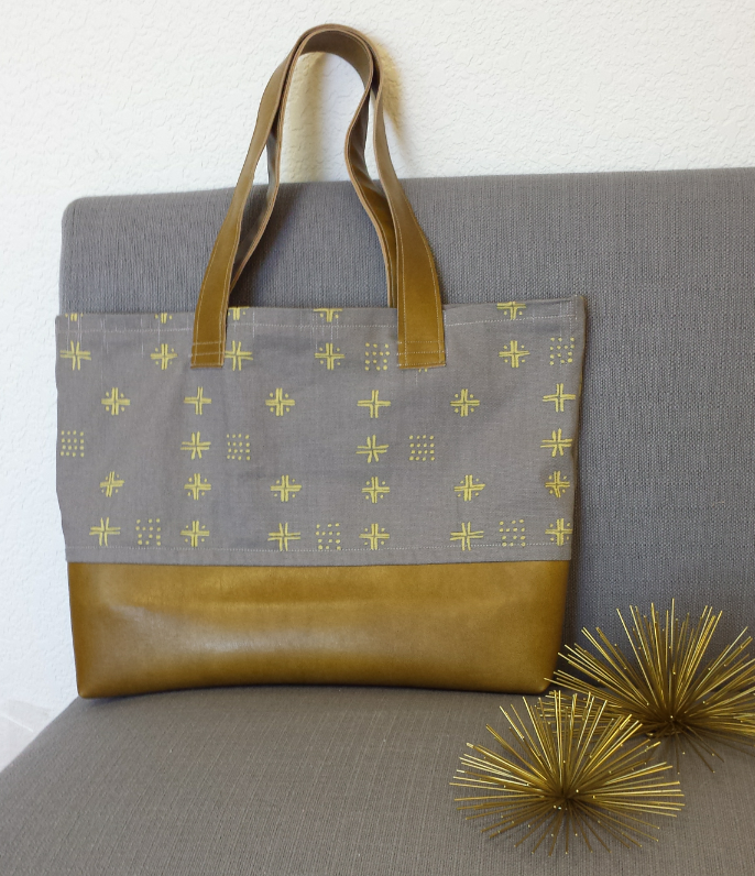 This tote sewn with grey canvas fabric is sturdy and so trendy! I  love the combination of canvas and vinyl! Since grey goes with so many outfits, I think this tote should definitely be on your sewing list this season!;)