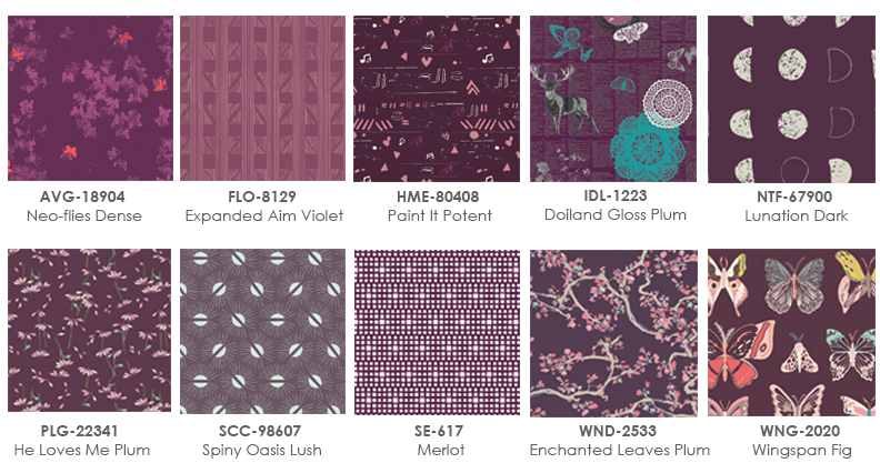 Are you ready to  create beautiful plum quilts and pillows to add a little sophistication and richness to your home decor? Or maybe glamorous plum garments for yourself? Here are a few prints from some AGF fabric collections that we chose for this Color Fun episode. We hope you’ll love them!