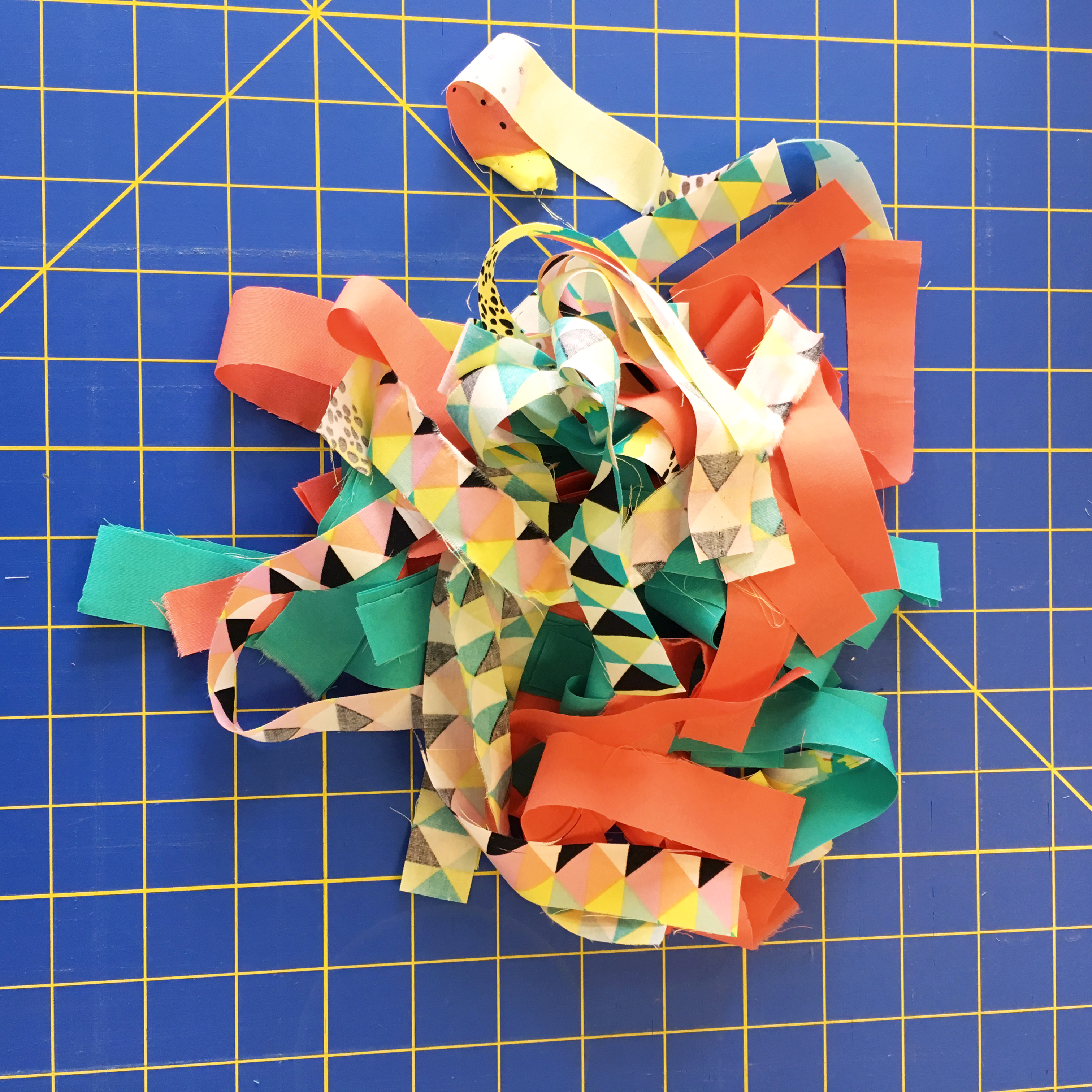 2) After having the shape of your wreath it's time to cut some fabric! I used fabric scraps which was awesome because sometimes we don't know what to do with them.