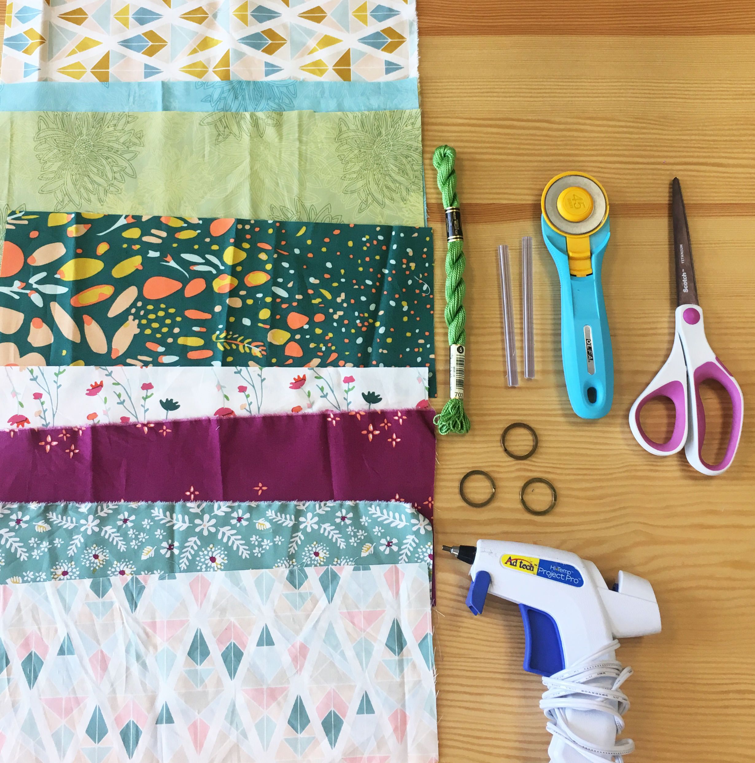 Garden Dreamer fabrics by Maureen Cracknell has definitely stolen my heart. I LOVE all the prints! They are simply exquisite! I'm always looking for little projects I can make in less than an hour, so I get the chance to use all the beautiful fabrics we have here. :) Today, you will learn how to make a tassel key chain. Yay! What I like about this project is that it looks super cute when it's done and you can make it in a few minutes. Another thing that I like is that it is a kids friendly project because you don't need to sew it! For this project I used Garden Dreamer fabrics and our Floral elements!