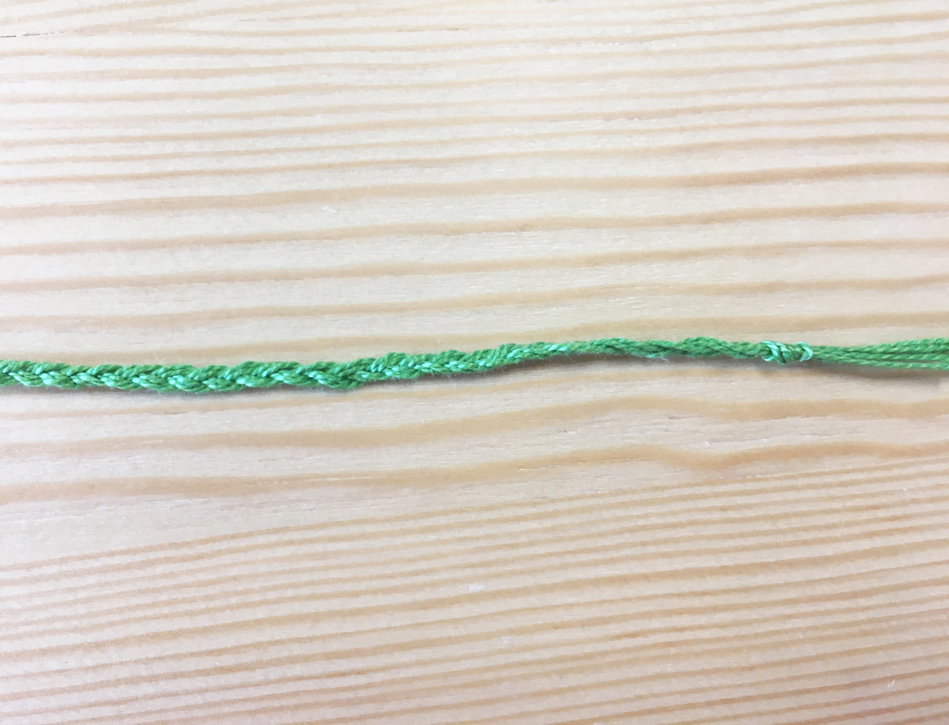 1- Create a 6 inch long braid with the embroidery thread, you can make this braid as thick as you want. I braided 6 threads for the ones that I made.
