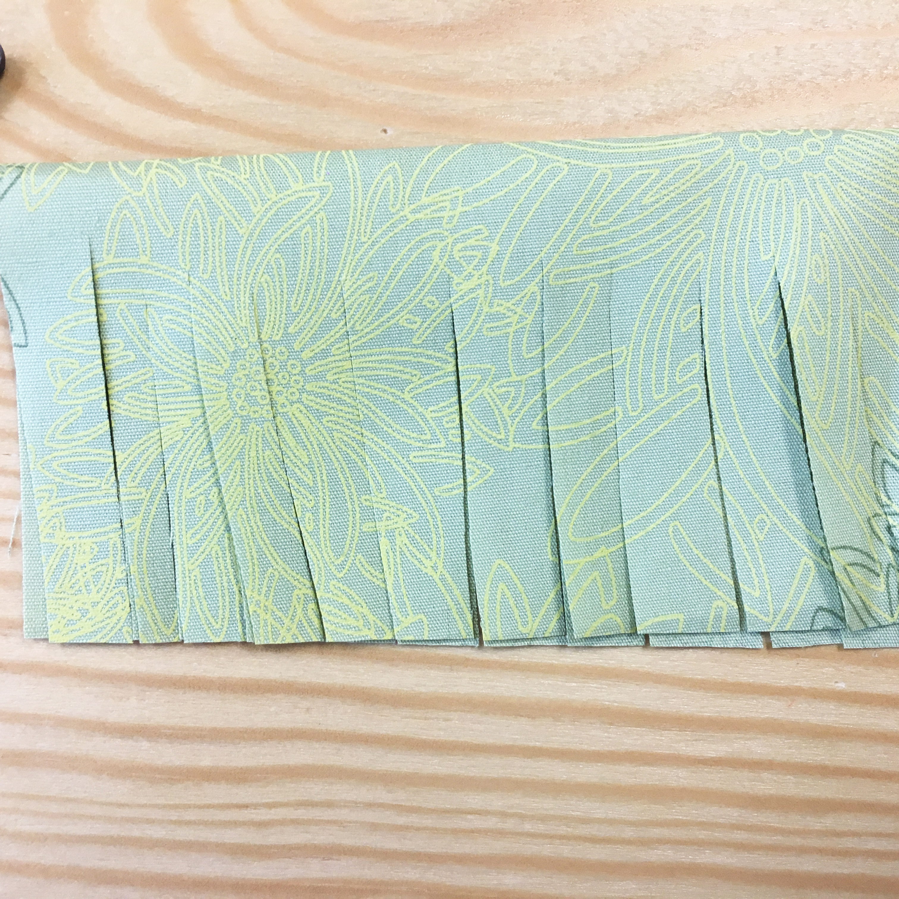 3- Fold the fabric you chose and the cut fringes with the scissor or rotary cutter. I used the scissors but if you want to be very precise use the rotary cutter.