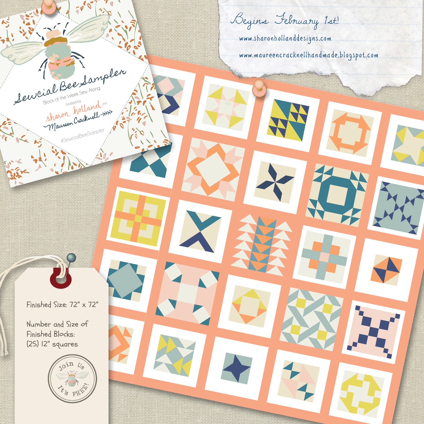 Today, we have some exciting news for all of you! If you’ve been trying to venture into quilting, you’re looking for support as a beginner sewist, or simply want to be part of the sewing/quilting community, we have an event that you’re going to love! Our designers Sharon Holland and Maureen Cracknell are hosting the Sewcial Bee Sampler: A Block of the Week Sew Along.