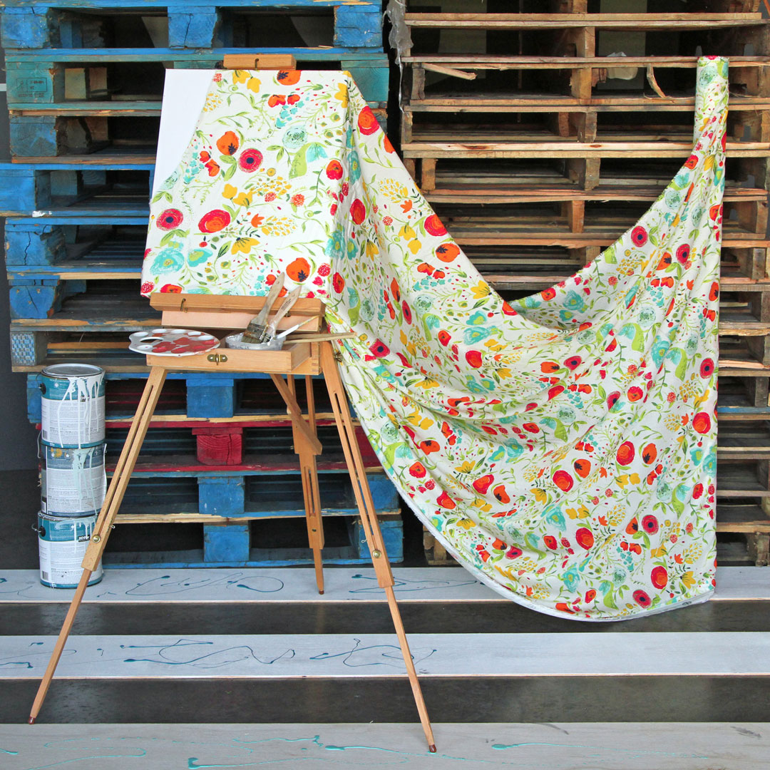 Multiple times that's how a fabric design begins, maybe not on an easel in the middle of a giant studio, but in someone's sketchbook, through an afternoon of watercolouring, or through frustration let out on a canvas in the style of Joan Mitchell.
