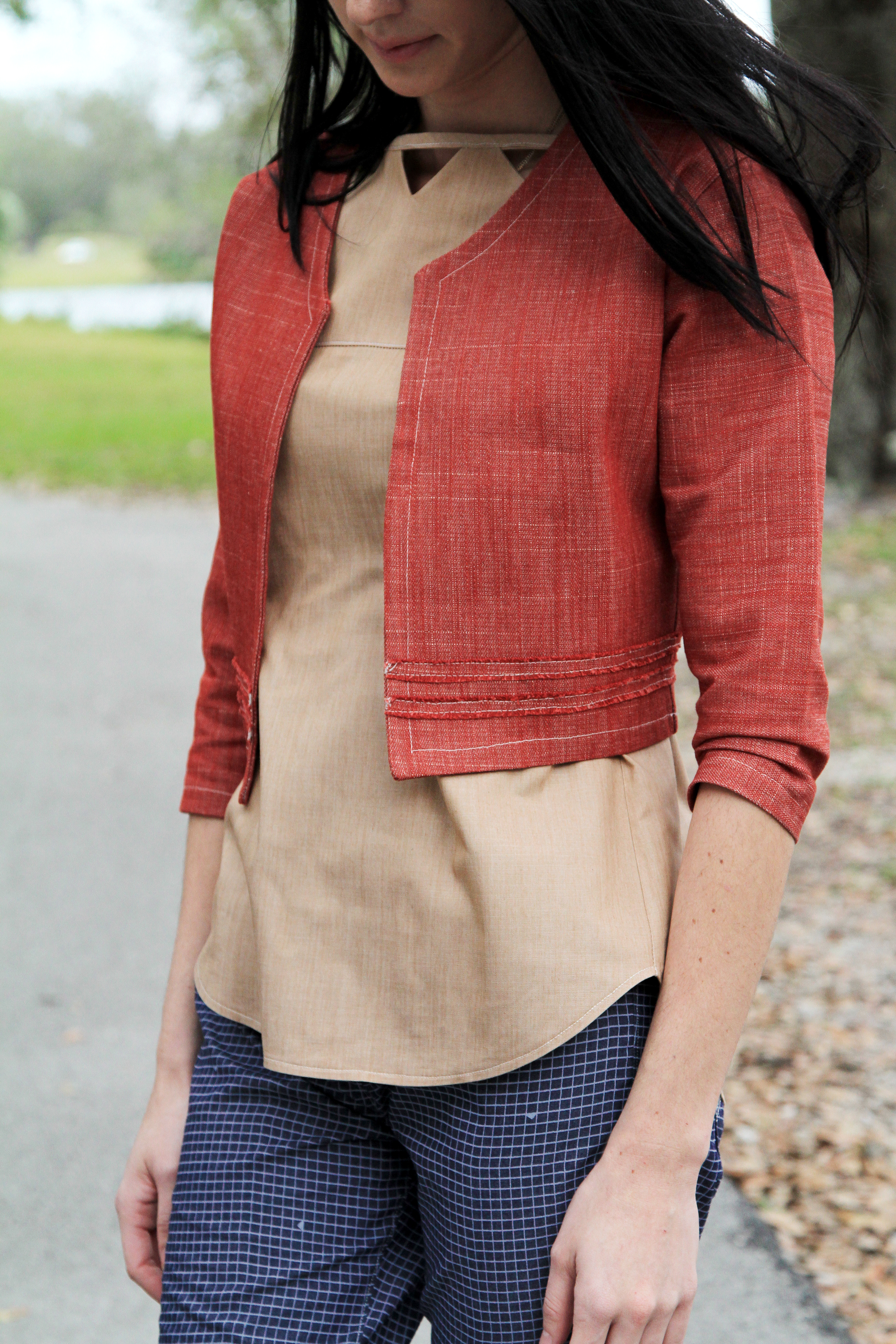 We made our Jacket in “Scarlet Brick” Solid Textured Denim from the AGF Denim Studio.