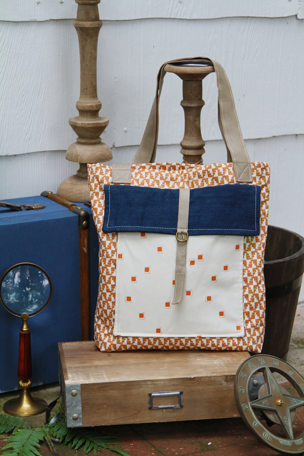 Ok! A look is never finished without a bag! The Locked Tote is perfect for being prepared for the days that never seem to end. We all led busy stressful lives and not having enough handbag space shouldn’t be one of them! This spacious tote has a cute front flap pocket that is perfect for keeping all the most used items throughout your day! This bag is extremely functional yet will bring together any outfit you decide to put on! We made our tote with prints from Artisan Fabrics mixed with AGF Denim and faux leather.
