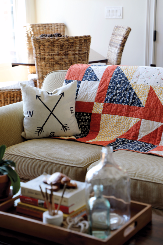 Long time no decor, I am back and fueled up, because I wanted to share with all of you some amazing projects for the home I came across. As you may know, Sharon Holland is one of our lovely designers, who just released a book called Utility Style: Quilts for Everday Living- which primarily talks about the various pattern designs and styles for quilts. I wanted to take you on a tour and give you a little behind-the-scenes on what this book has to offer and how the different quilts can be applied to any space in your home.