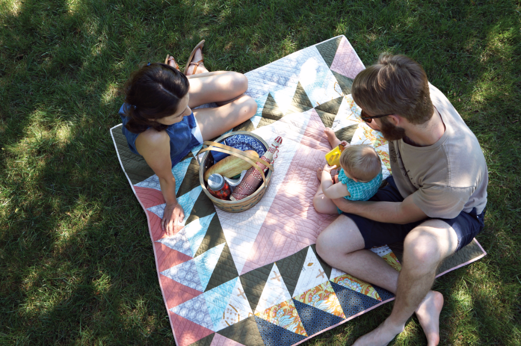 3. Snuggle with your quilt outdoors with this Goose Chase pattern, which can easily be made using leftover halves! So, save in fabric and splurge on a yummy picnic outside to enjoy this design in some natural lighting.
