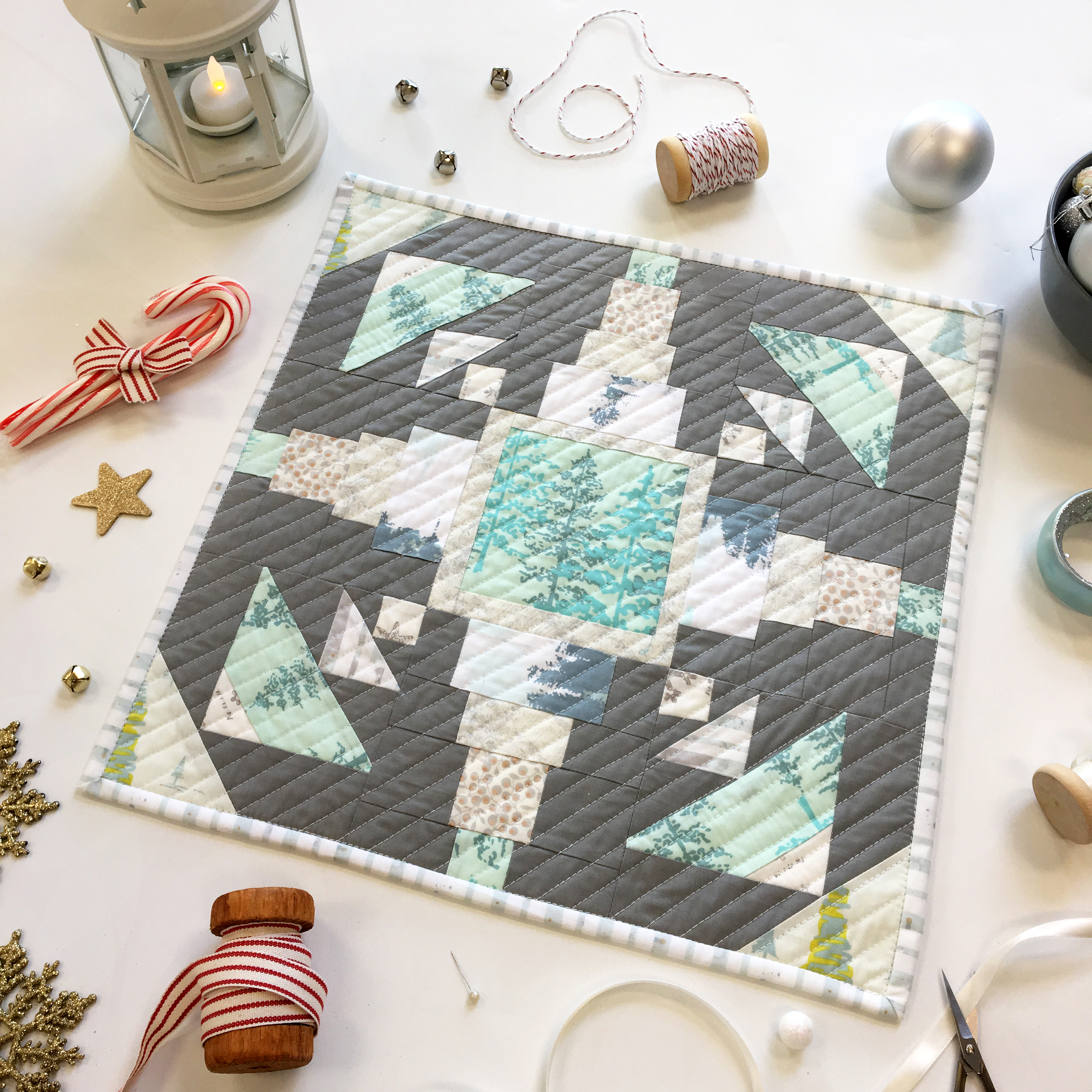 Sew your blocks up following the blocks design and your Let it Snow Mini is complete! I used a winter white thread and added some 1/4" diagonal line quilting to finish off my mini.