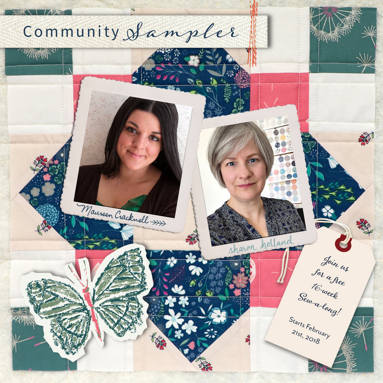 The response to the Sewcial Bee was so amazing that Maureen and Sharon decided to host another sew along this year. The first PDF of the Community Sampler will be released on February 21st on Maureen and Sharon’s blogs, so make sure to take part from the beginning. Don’t forget to follow them on Instagram, @sharonhollanddesigns and @maureencracknell to get all the updates about the sampler.
