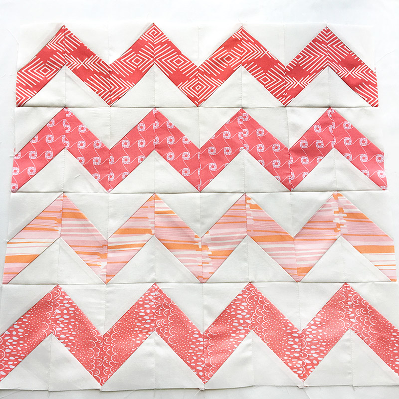 Repeat this process fifteen more times with your remaining fabric pieces. Sew similar block units into rows and then sew your rows together to get a cool looking mini like mine!