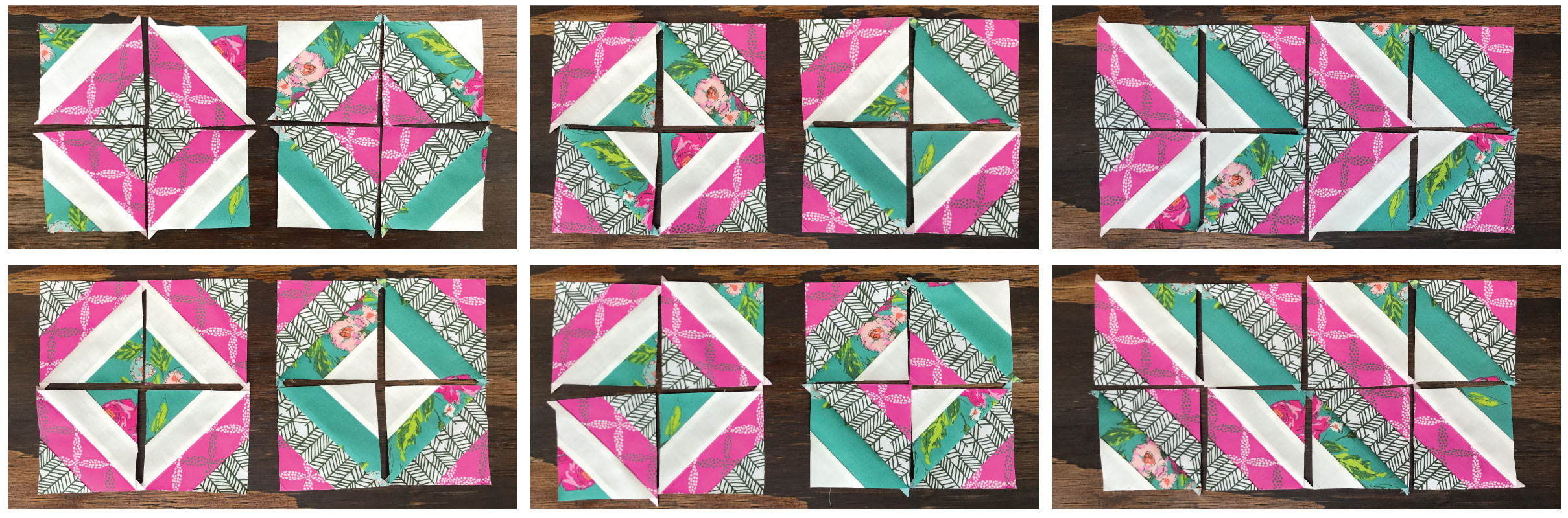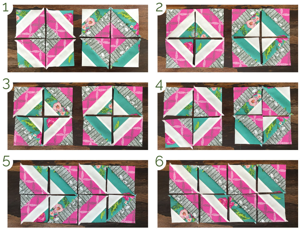 I started by cutting one (1) WOF (Width of Fabric) x 1 5/8" strip from each of the four (4) fabrics to get 3" x 3" finished blocks. I also went the extra mile and came up with a small chart just in case you would like to make your blocks in different sizes :)