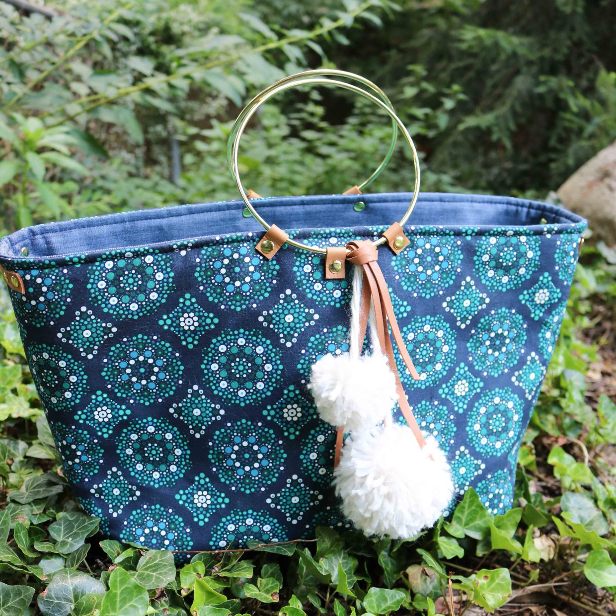 Cristy sewed up such a chic looking tote with the “Mandala Drops Midnight” print for the exterior and “Pieced Bunches Cool” to give the lining a pop of color. Definitely won’t have to worry about losing your items in this tote with it’s nice roomy zipper and slip pocket. Head over to her blog to check out the cute hardware’s she incorporated into her bag.