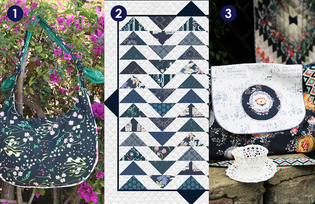 Hobo Bag #1: An everyday bag featuring the print “Blossom Swale Depth” to be the center of attention. Elevate your look by pairing this unique, decorative bag with any solid print outfit like a off-white tunic and olive-green palazzo pants. Download the pattern here.