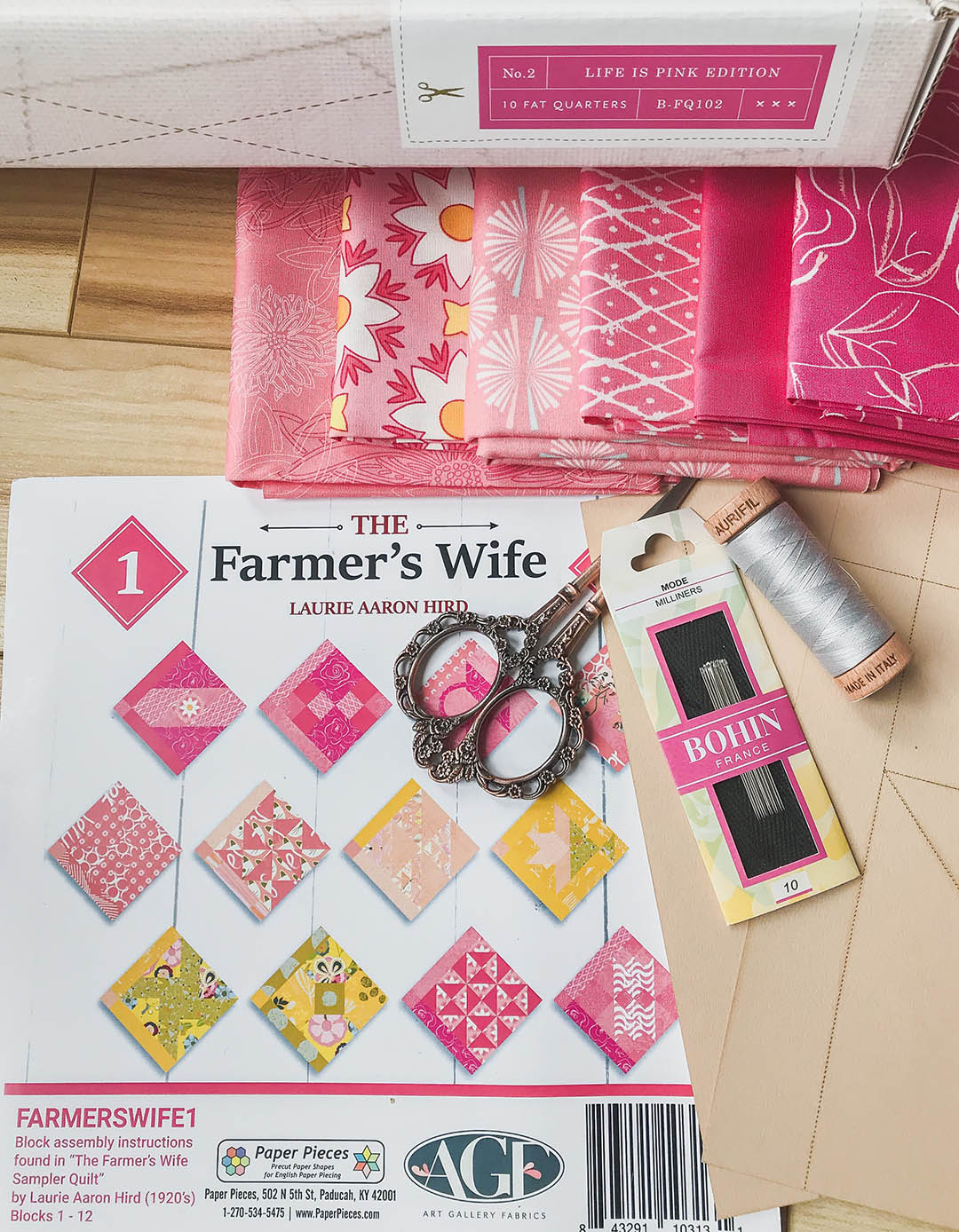 If you’re an EPP lover and you’re ready to start sewing these blocks, I recommended going to Paperpieces.com to get your hands on The Farmer’s Wife pattern pieces and The Farmer’s Wife Sampler Quilt Book by Laurie Aaron Hird! It includes 111 high quality paper templates and it’ll explain how to put together the quilt.