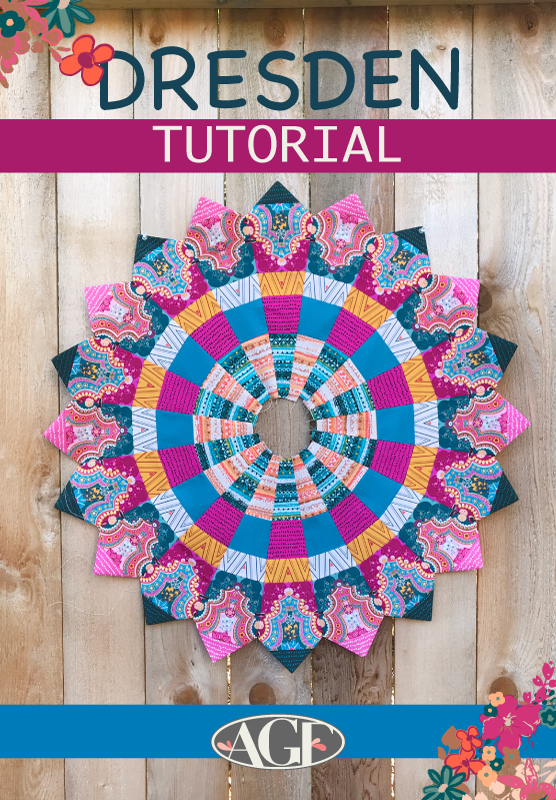 Finally, place your dresden on top of a layer of fabric, batting and backing and secure it by edge-stitching 1/4" away from the outer edge of the dresden and 1/4" away from the border of the center circle.