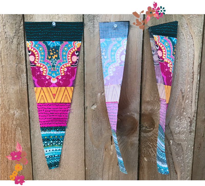 Take each piece, fold it in half lengthwise with the wrong side out, stitch at 1/4" from the top edge, and turn it to the right side.