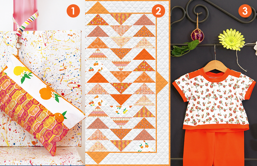 My favorite season is around the corner…summer!! The countdown begins..June 21st, the official first day of summer and I can’t wait. Most people down here in Florida either really love or despise the summer months because it can get really hot, but I just happen to love the humidity, the bright colors, and all the breezy garments that come with the season. Now that I’ve been exploring how to sew on a sewing machine, I am really excited about adding some more sewing skills to my experience. Fun projects call for fun fabrics, so this month I chose “Tangerine Summer” Color Master to take the spotlight. A bundle that represents the sunny warm colors, vibrant fruit, and bloomed flowers… These fabrics are already calling my name.