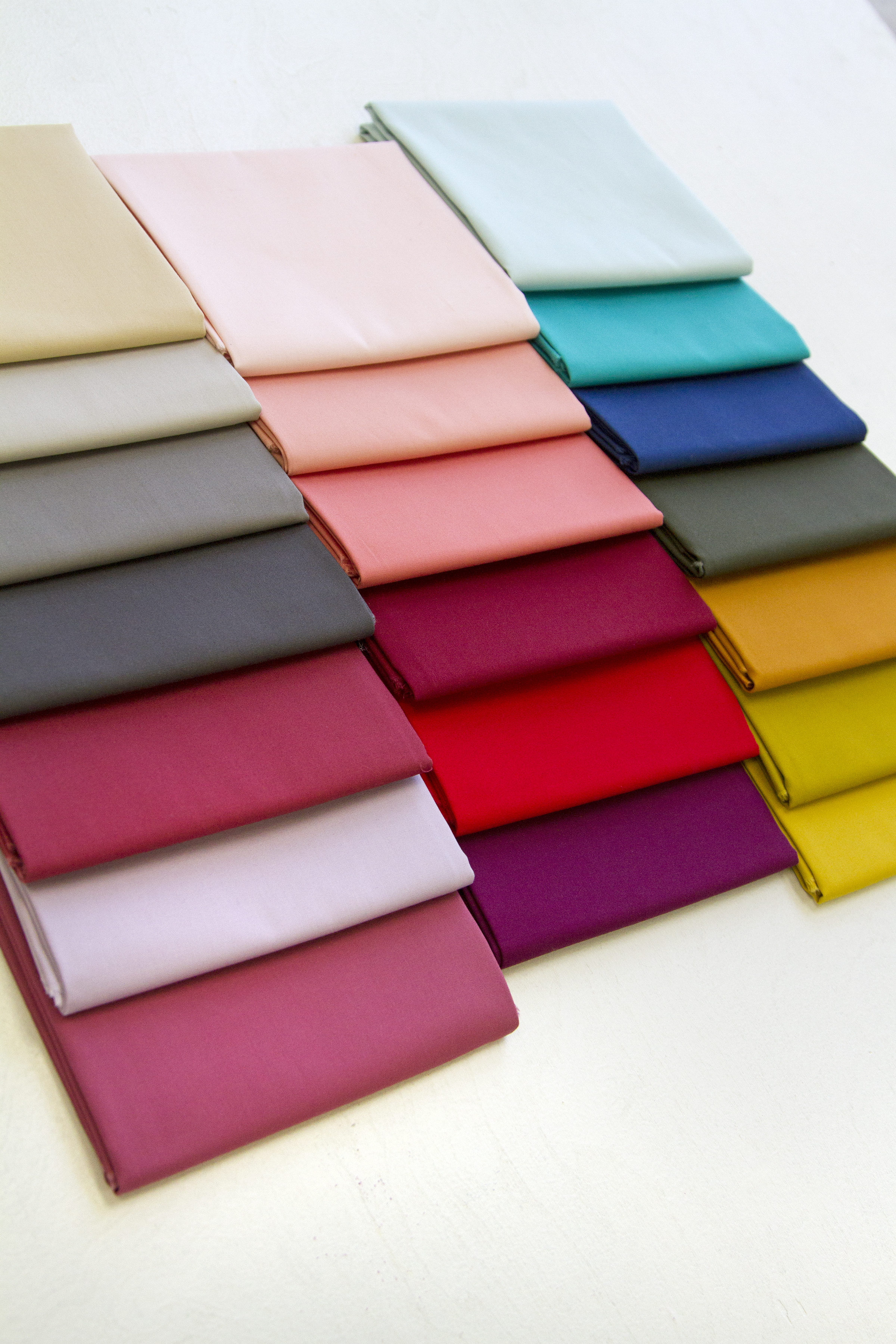 That's right! We decided to expand our range of hues, so you have more options to match with our collections or simply use on their own. Now you'll find that "slightly more lemonish yellow, brighter shade of red, or ever that super light lilac." Our unique and improved dip-dye technique leads to the most brilliant shades ever, and now all of our Pure Solids are internationally OEKO-TEX certified, so you can rest assure our dyes are the most environmentally safe to use for the sewing industry.