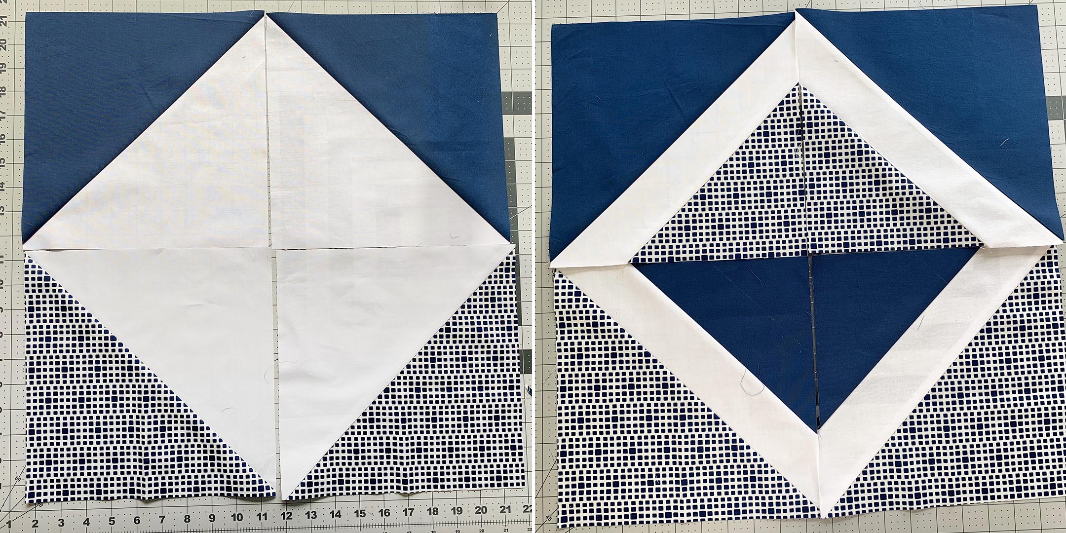 2. Use the diagonal on the ruler!! I will make the world of the difference on squaring your pieces.