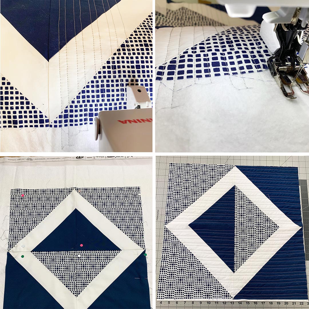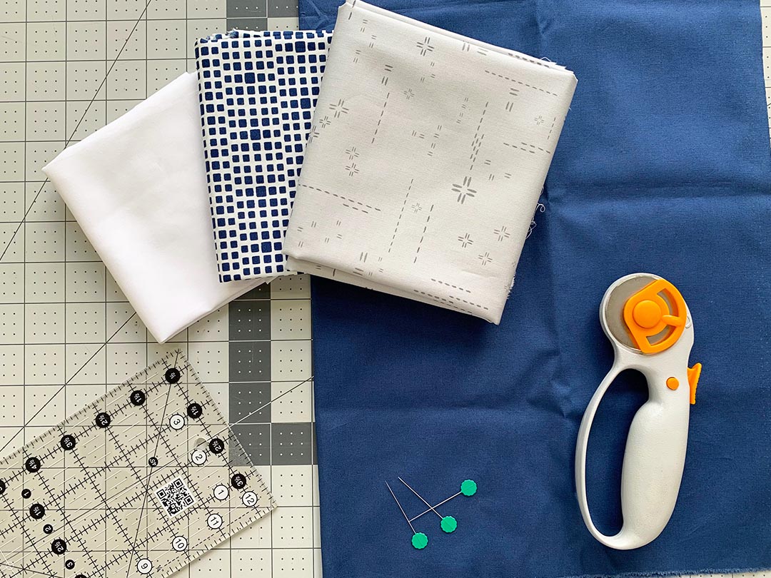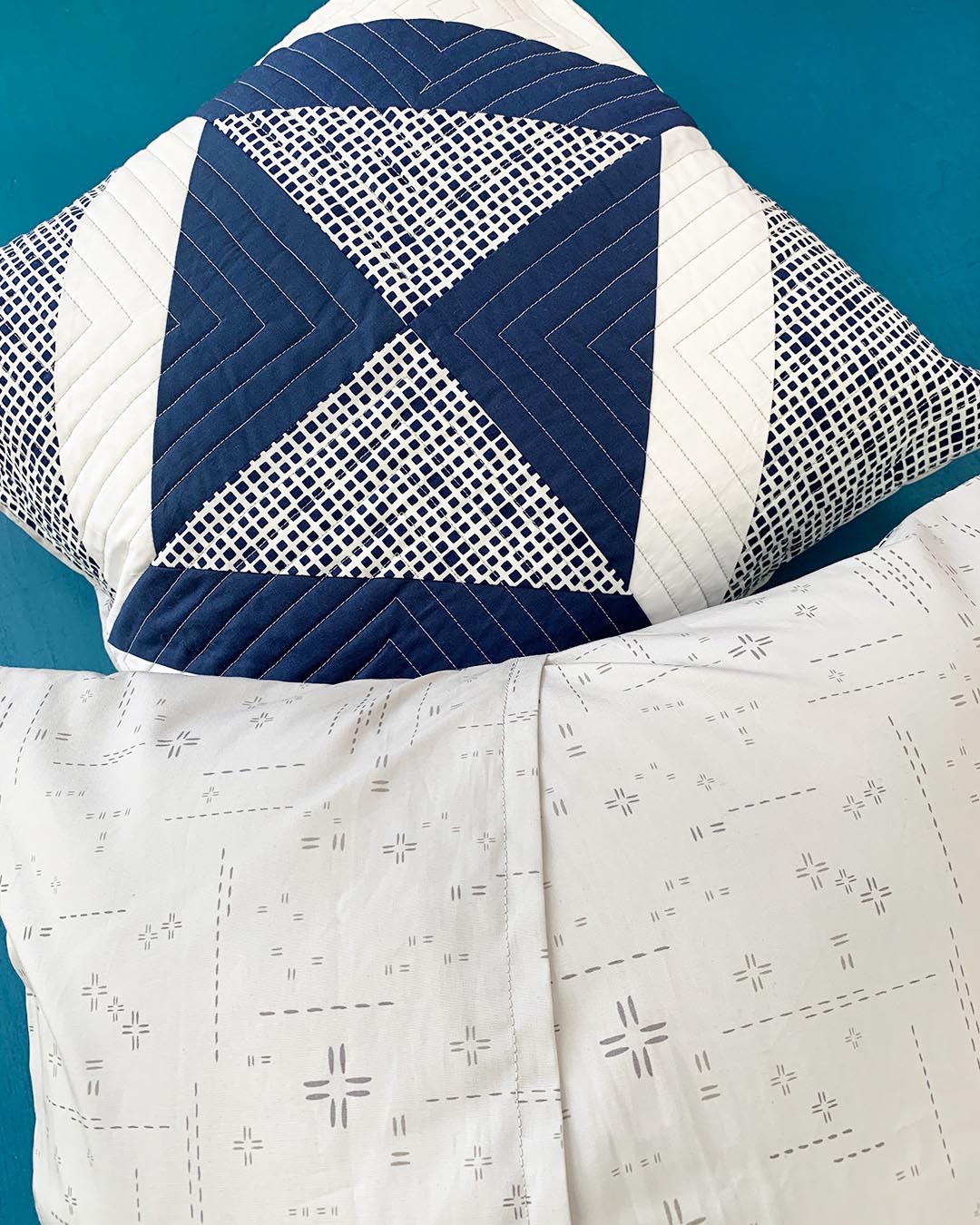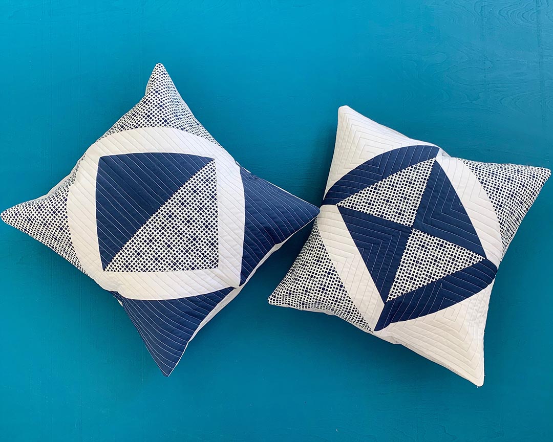 1*Fabrics used: Pure Solids in White Linen and Night Sea, Squared Elements in Navy, Decostitch Elements in Reflection.