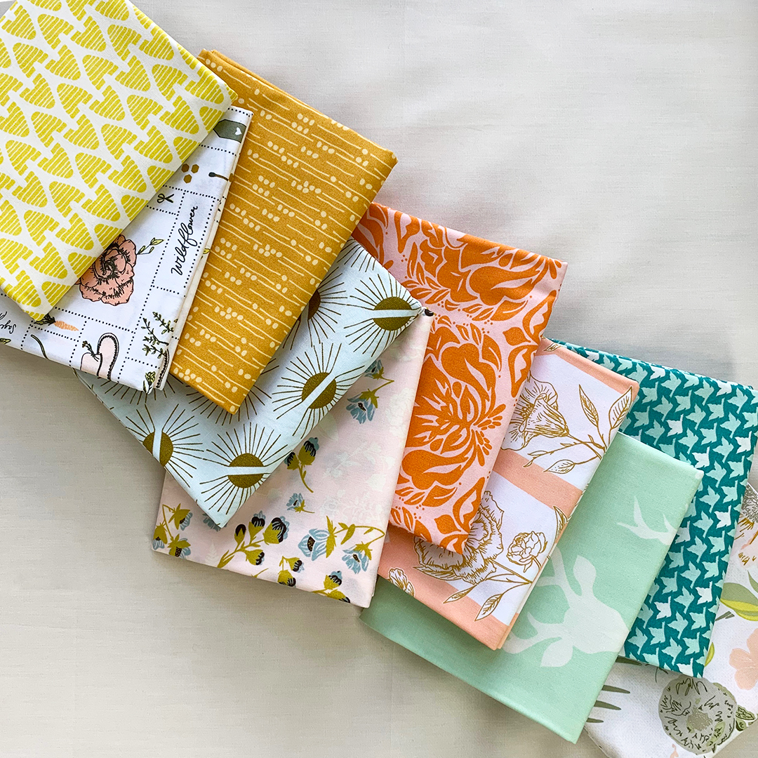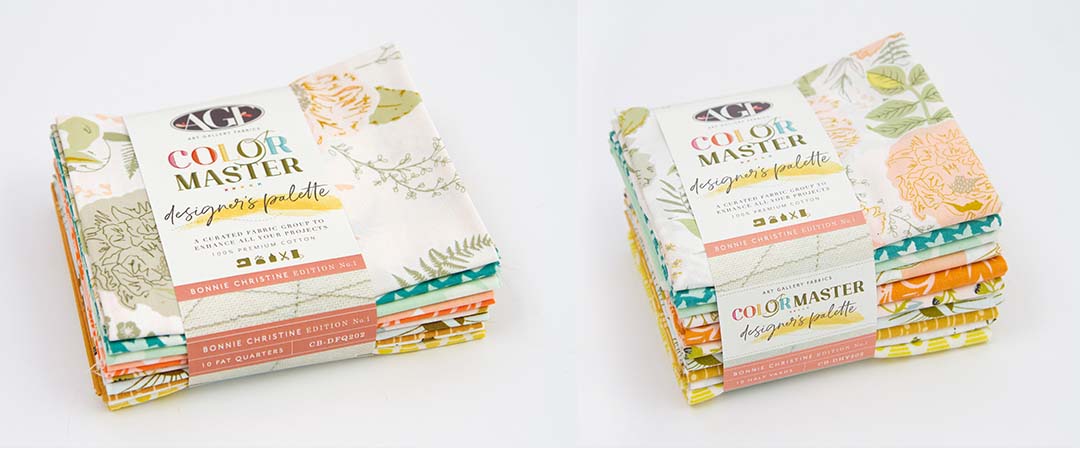 Summer is coming to an end but at this time of year where we should take advantage of the summer nights. Inspired by all the warm colors that come out during the golden hour, I instantly thought of Bonnie Christine and her fabrics! But how can I choose just one collection from her? Thankfully, AGF already did the hard work for me! You may have seen the Color Masters before on the blog talking about each color group but now AGF launched the Color Master in “Designer’s Palette Edition” where they have curated a 10-piece FQ/HY sampler bundle from each designer with coordinating prints, to better introduce you to each designer’s style.