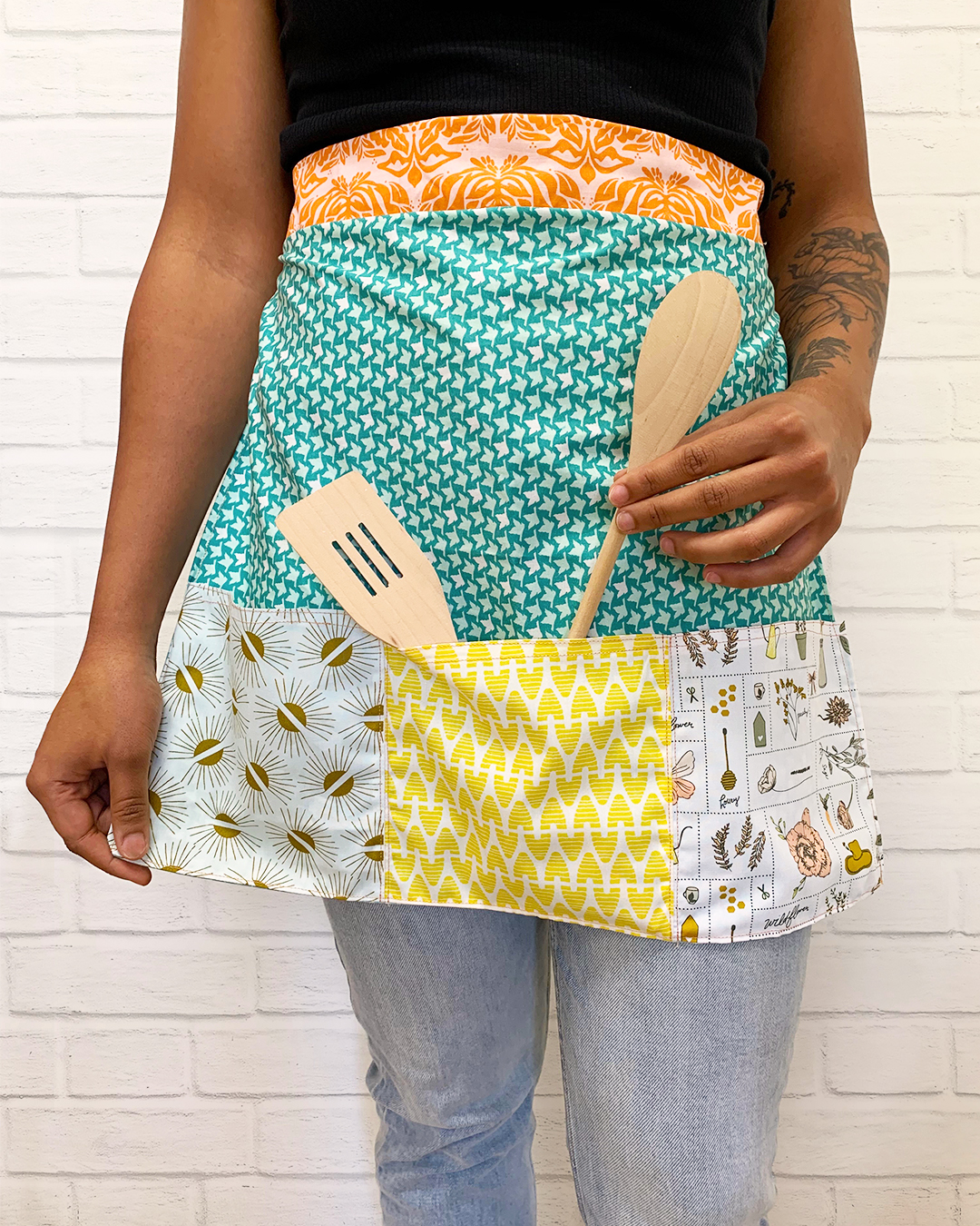 Obsessing over the prints with a retro-vibe, I decided to make a Harvest Apron, using some of the prints from the FQ box! I made this super easy apron, that anyone can make or customize with their favorite prints.