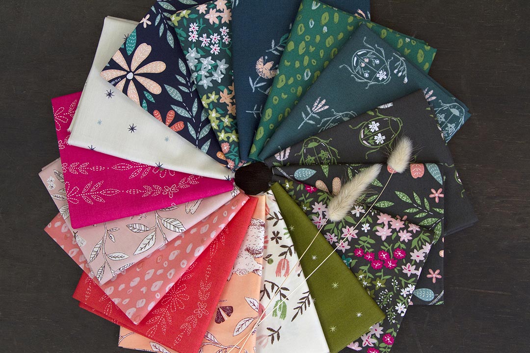 Meaning "happy weather" in Middle English, this collection is available in 16 prints and it's all cotton, which means quilters, you will have tons of fun sewing with this group of fabrics. This collection celebrates the art of embroidery and hand-stitching techniques as a way to tell a story surrounding the love and enchantment of nature around us.