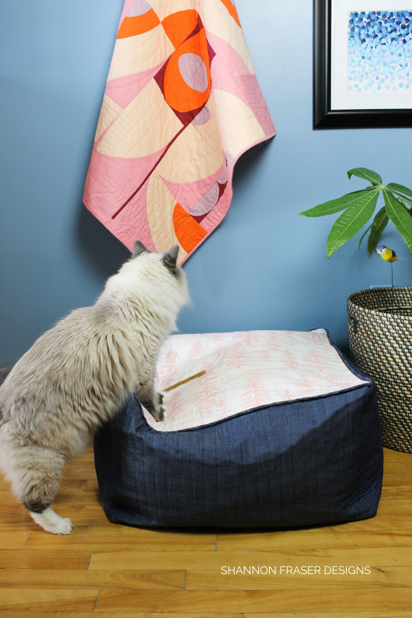 My family get-togethers are pretty packed and seating is always at a premium (with lots of musical chair shenanigans to go along with it!). So, I thought a floor poof would be the perfect addition for added seating when I’m in a pinch. Or, at the very least, a fun napping spot for Pips 😉